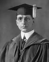 There were occasions when de Valera seriously contemplated the religious life like his half-brother, Fr. Thomas Wheelwright, but ultimately he did not pursue this vocation. As late as 1906, when he was 24 years old, he approached the President of Clonliffe Seminary in Dublin for advice on his vocation.[22] De Valera was throughout his life portrayed as a deeply religious man, and in death asked to be buried in a religious habit. His biographer, Tim Pat Coogan, speculated that questions surrounding de Valera's legitimacy may have been a deciding factor in his not entering religious life. Being illegitimate would have ordinarily been a bar to receiving priestly orders as a secular priest, but not to becoming a priest or religious in some religious orders.[23]