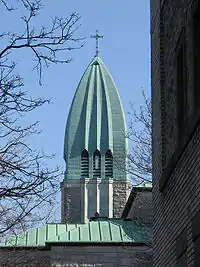 Constructed in 1954 based on a design by architect Joseph-Armand Dutrisac, it distinguished itself with its ogival shaped belltower.[1]