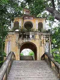 Đống Đa Mound is located within the Đống Đa Park. On top of Đống Đa Mound is a temple gate which has on its top 3 Han Chinese words Trung Liệt miếu (Trung Liệt shrine). There was supposed to be a temple which doesn’t exist anymore. From the foot of the mount leads a paved way to the statue of King Quang Trung-Nguyễn Huệ with two relievos and a museum.[3]