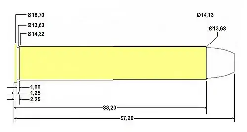 | Bullet diameter | .512 in (13.0 mm) | |||||||