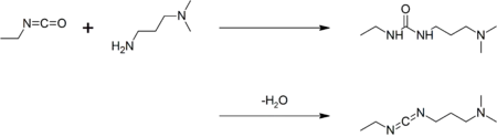 EDC is commercially available. It may be prepared by coupling ethyl isocyanate to N,N-dimethylpropane-1,3-diamine to give a urea, followed by dehydration:[4]