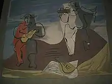 Inside, on the western end of 1251's atrium hangs an artist-authorized replica of a tapestry Pablo Picasso created for the ballet Mercure, the original of which hangs in the Musée National d'Art Moderne in Paris, France. It was created specifically for the building, as per the plaque beneath it.
