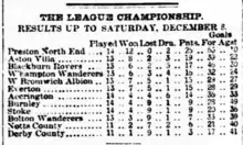 - ↑ "Bolton Wanderers have got into the eighth place by a better goal average than Burnley or Derby County". Athletic News: 1. 16 October 1888.