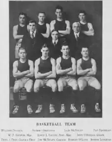 Freshman forward Bill Dudack later served as the Hoyas' head coach during the 1929-30 season.[1] Sophomore guard Alexander "Pat" Finnegan left school after the season for United States Army service in World War I and while in military service died of influenza — the so-called "Spanish flu" — during the 1918–1919 influenza pandemic.[11][12]