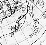 In its early developmental stages north of the Greater Antilles, the storm disrupted shipping routes through the Bahamas and generated rough seas offshore Cuba.[5][6] At its first landfall on Fort Pierce, the hurricane caused property damage in several areas, particularly in coastal regions, where numerous homes were unroofed.[7] Central Florida's citrus crop was hampered by the strong winds and heavy rain.[3] Several of Florida's lakes, including Lake Okeechobee, rose past their banks, inundating coastal areas.[8][9] Damage to infrastructure was less in inland regions than at the coast, though power outages caused a widespread loss of communication.[10] At the hurricane's second landfall, wind damage was relatively minor, though torrential rainfall, aided by orthographic lift, caused extensive flooding as far north as the Mid-Atlantic states.[11] Overall, the hurricane caused $235,000 in damages, primarily in Florida, and two deaths.[3]