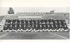 Dickie Cranwell passed 20-yards to Grover Jones in the end zone to cap a 73-yard second period drive which accounted for all the scoring in the 6–0 rivalry win for 14th-ranked VPI over Virginia.[19] The game was played at Victory Stadium in Roanoke. Cranwell, a sophomore, was starting his first game in place of quarterback Johnny Dean.[19] Dickie Beard led the defense, intercepting three UVA passes.[18] The game assured the Gobblers of an undefeated record against Atlantic Coast Conference (ACC) teams. 1954 was Virginia's first season in the ACC, a very sore subject with the Hokies.[30] UVA, instead of Tech, had been the new conference's selection to bridge the gap between Maryland and the Carolinas. (At the time, Maryland's Terrapins were a national power, important for the prominence of the conference. So the league opted to become a four-state, instead of two-state league. However, it limited the size to eight schools). By the end of the season, the Gobblers made a satirical claim that it was in fact the ACC champion, since it had won as many games against conference teams as any other team in the conference.[30] In reality, Tech did not beat Maryland, which finished as the actual conference champion with a 4–0 record. So its claim should have been it was co-champion.[30]