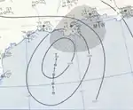 On September 12, a mid-level circulation area formed over Nicaragua and slowly drifted northeastward into the Gulf of Mexico.[11] As it entered the Gulf, the system developed thunderstorm activity and an area of low pressure, and as a result the Weather Bureau began initiating advisories on a newly formed tropical depression on September 16.[5][6] The depression quickly intensified and attained tropical storm strength. Esther continued to strengthened, reaching a minimum pressure of 1000 mbar (hPa; 29.53 inHg) early on September 18,[6] as reported by a hurricane reconnaissance flight.[5] Shortly thereafter, the large tropical storm peaked with sustained winds of 65 mph (105 km/h) as it made landfall to the southwest of Dulac, Louisiana.[5][6] Esther weakened over land and later dissipated over the Mississippi Valley by 1200 UTC on September 19.[5][6]