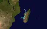 The storm struck Madagascar and moved across the island, later crossing the Mozambique Channel and striking eastern Mozambique. The storm recurved to the east, passing south of Madagascar.[1]