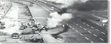 Fireball Roberts was involved in a crash while trying to avoid Junior Johnson and Ned Jarrett's crash on lap 7.[2][3][6] Roberts was sent to Charlotte hospital.[6] While he was not seriously injured by the crash itself, Roberts was trapped when his ankle became pinned under the dashboard and caught by either the clutch or brake pedal.[6] The death would have occurred at the speedway if Jarrett hadn't pulled Roberts out.[6] He died on July 2 of that year; leaving behind a wife (Doris Roberts) and a young daughter (Pamela Jane Roberts Trivette).[6] Jarrett would go up to Roberts, and Roberts, who was uninjured and conscious, told Jarrett "Oh my God, Ned, help me! I'm on fire!" after being caught on fire because of the crash.[7]