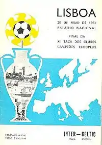 The 1967 European Cup final was a football match contested between Italian team Internazionale and Scottish team Celtic to determine the champion of the 1966–67 European Cup. It took place on 25 May 1967 at the Estádio Nacional in Lisbon, Portugal, in front of a crowd of 45,000. The match was Celtic's first European final and Inter's third; the Italian club had won the tournament in two of the previous three years.