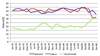 The Social Credit Party selected Gary Knapp as its candidate. Knapp had contested the seat in 1978 where he had boosted Social Credit's vote from 5% to 20%, one of the party's best results at the election.[11]