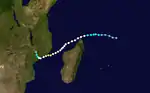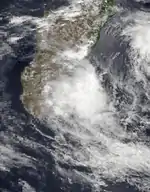 There were three short-lived tropical depressions toward the end of February. The first formed on February 19 about 350 km (220 mi) northeast of Tromelin Island. It moved southward toward Mauritius, bringing several days of heavy rainfall there and Réunion. The depression turned to the west-northwest and dissipated on February 23.[29] That day, the other two depressions formed, including one between Réunion and Madagascar. Given the name Isabeau, it moved westward and dissipated on February 24, reaching winds of only 50 km/h (30 mph).[29][30] The other depression originated in the Mozambique Channel off the southwest coast of Madagascar. On February 24, the system passed south of the island while moving southeastward, bringing wind gusts of 79 km/h (49 mph) at Tôlanaro. It gradually became extratropical, dissipating within the westerlies on February 26.[29] The JTWC classified the system as Tropical Cyclone 20S, estimating 1 minute winds of 85 km/h (55 mph),[31] although it was only officially classified as a tropical depression.[29]