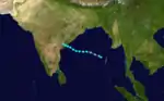 The final storm of the season developed on November 4 in the central Arabian Sea. It tracked northeastward, strengthening into a tropical storm on the 6th and a cyclone on the 7th. The system peaked at 100 mph winds before hitting Veraval, India on the 8th. The cyclone rapidly dissipated, after resulting in 511 casualties and heavy flooding. Damages in Indian rupees were estimated to be 128 crores.