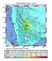 - 1 2 Plafker, G.; Agar, R.; Asker, A. H.; Hanif, M. (1987), "Surface effects and tectonic setting of the 13 December 1982 North Yemen earthquake", Bulletin of the Seismological Society of America, 77 (6): 2019, Bibcode:1987BuSSA..77.2018P, doi:10.1785/BSSA0770062018