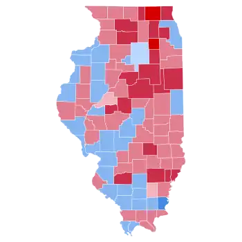The presidential election of 1988 was a very partisan election for Illinois, with more than 99% of the electorate voting for either the Democratic or Republican parties, and only five political parties listed as options on the ballot statewide.[1] As of the 2020 presidential election, this was the last time that Illinois voted Republican in a presidential election. 1988 is also the most recent election in which Peoria County and Champaign County voted for a Republican presidential candidate, as well as the last time a Republican candidate won more than 40% of the vote in Cook County, home to Chicago.[2]
