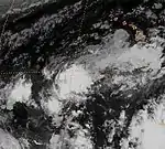 Tropical Storm Ignacio formed first as a depression in an area of disturbed weather on August 17. Twelve hours later, it organized into a tropical storm. Its location of tropical cyclone formation was further north and west of where most East Pacific tropical cyclones develop.[22] Steering currents pulled Ignacio north, where it encountered wind shear and cooler waters. Ignacio never intensified beyond 40 mph (65 km/h) and then was downgraded into a depression on August 18. It last transitioned into an extratropical cyclone 24 hours later. It was then absorbed by a cyclone associated with the remnants of Hurricane Guillermo.[22]