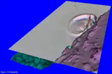 The island of New Guinea lies within the complex zone of collision between the Australian Plate and the Pacific Plate. Within this overall setting, the active tectonics of northern Papua New Guinea is dominate by the effects of continuing collision between the Huon–Finisterre island arc terrane with the edge of the Australian continental margin. The overall shortening is concentrated into two zones of thrust faulting, the Ramu–Markham fault zone, which forms the southwestern boundary of the Huon–Finisterre terrane, and the Highlands Thrust Belt, which lies further southwest and deforms the Australian margin.[5] The hanging wall of the Ramu–Markham thrust system is broken up by a series of strike-slip faults. The orientation of these faults, parallel to the direction of thrusting, suggests that they accommodate distortion of the Huon–Finisterre block. Most of the seismicity in northern Papua New Guinea is associated with the Ramu–Markham fault system, with a smaller number of earthquakes occurring on the strike-slip faults and on the Highlands Thrust Belt.