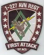 The 1st Battalion, 227th Aviation Regiment is an attack helicopter battalion of the Combat Aviation Brigade, 1st Cavalry Division.[1] The battalion is an AH-64 Apache battalion based at Fort Hood, Texas.