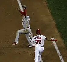 - ↑ "Beltran ties Ruth with 15th postseason homer: Cardinals All-Star belts three-run shot to ignite seven-run third inning". MLB.com. October 3, 2013.