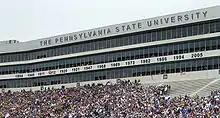The 2014 Penn State Nittany Lions football team represented Pennsylvania State University in the 2014 NCAA Division I FBS football season. The team was led by first year head-coach James Franklin and played its home games in Beaver Stadium in University Park, Pennsylvania. It was a member of the Big Ten Conference and played in the newly organized East Division. Penn State was ineligible to play in a bowl game due to NCAA sanctions imposed in wake of the Penn State child sex abuse scandal. However, on September 8, 2014, the NCAA announced that Penn State would again be eligible for post-season games, effective immediately.[2] Penn State had a 7–6 overall record for the season with a 2–6 conference mark, placing sixth in the Big Ten East Division. The Nittany Lions concluded the season with a victory in the Pinstripe Bowl over Boston College.