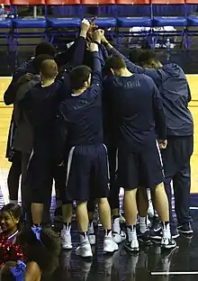 The 2016–17 Villanova Wildcats men's basketball team represented Villanova University in the 2016–17 NCAA Division I men's basketball season. Led by head coach Jay Wright in his 16th year, the Wildcats participated in the Big East Conference and played their home games at The Pavilion, with some select home games at the Wells Fargo Center in Philadelphia, Pennsylvania. They finished the season 32–4, 15–3 in Big East play to win the regular season championship. In the Big East tournament, they defeated St. John's, Seton Hall, and Creighton to win the tournament championship.[1] As a result, they received the conference's automatic bid to the NCAA tournament. The Wildcats were given the Tournament's overall No. 1 seed as a No. 1 seed in the East region. In the First Round they defeated Mount St. Mary's before being upset by No. 8-seeded Wisconsin in the Second Round.[2][3] The loss marked the second time in the previous three tournaments that Villanova was upset by an eighth-seeded team.