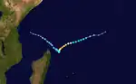On 6 November, a tropical depression formed well to the east-northeast of Madagascar.[10] The system continued to track generally west-southwestward into more favorable conditions for the next few hours, before strengthening into a Moderate Tropical Storm and was named Alcide later that day.[11] On 7 November at 06:00 UTC, Alcide strengthened into a tropical cyclone, or a Category 1-equivalent tropical cyclone on the Saffir–Simpson hurricane wind scale (SSHWS)[12] On 8 November at 06:00 UTC, Alcide strengthened into an intense tropical cyclone, or a Category 3-equivalent tropical cyclone on the SSHWS, with maximum 10-minute sustained winds of 90 knots (165 km/h; 105 mph) and a minimum central pressure of 965 hPa(mbar).[13] It was downgraded to a tropical cyclone 6 hours later, mostly due to cooler sea temperatures and generally less favorable conditions.[14] Alcide continued to weaken as it began an anticyclonic loop east of the northern tip of Madagascar, falling to tropical storm status at 12:00 UTC on 9 November.[15] The system rapidly deteriorated thereafter, falling to tropical depression status at 00:00 UTC on 11 November; Météo-France discontinued advisories at noon that day.[16][17] The system continued east as a remnant low until 13 November, when the remaining convection vanished due to wind shear.