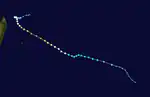 On 11 September, a disturbance formed in the open waters of Indian Ocean. On the next day, the system intensified to a tropical depression formed to the southwest of Diego Garcia.[6] The system tracked west-southwestward, organizing slowly over marginally warm waters of 26–27 degrees Celsius and moderate wind shear.[7] On 16 September, the tropical depression began to quickly weaken after encountering unfavorable conditions. On the next day, both the MFR and the JTWC issued their final warnings, and the system was downgraded to an extratropical low. The remains of the system dissipated a few hours later north of Madagascar.[8] In post-storm analysis, the system was upgraded into a moderate tropical storm, although it remained unnamed.[9]