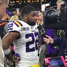 LSU running back Clyde Edwards-Helaire gives a post-game interview.