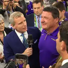Rinaldi interviews Orgeron on the field immediately after the game.