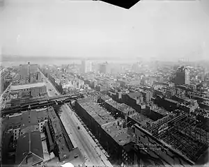 ![]() Looking below towards the west at the 34th Street station in 1918, from a skyscraper on Eighth Avenue. | ||||||||||||||||