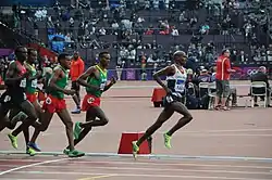 The 5000 metres at the Summer Olympics has been contested since the fifth edition of the multi-sport event. The men's 5000 m has been present on the Olympic athletics programme since 1912. The 3000 metres was the first women's Olympic long-distance track event, making its initial appearance at the 1984 Olympics, and this distance was extended to match the men's event from 1996 onwards. It is the most prestigious 5000 m race at elite level. The competition format typically has two qualifying heats leading to a final between fifteen athletes.