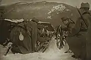 ![]() A Gebirgsgeschütz M 75 in action with the Polish Legion. | |