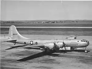 The squadron was activated again three months later at Dalhart Army Air Field, Texas, where it was assigned to the 383d Bombardment Group.[1] Shortages of B-29s for training caused the 383d and the squadron to remain in the United States for almost a year until finally it deployed to the Central Pacific Area in August 1945.[1] By the time the squadron arrived at West Field (Tinian) in September, hostilities in the Pacific had ended and it did not see combat.[3] The squadron returned to the United States in December and was inactivated at the port of embarkation.[1]