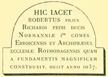 Sketch of the 18th-century plaque marking the tomb of Archbishop Robert the Dane in Saint-Père