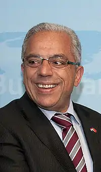 Abdellatif Maazouz (Arabic: عبد اللطيف معزوز; born 18 August 1954, in Sefrou) is a Moroccan politician of the Istiqlal Party. Between 2007 and 2012 he was Minister of Foreign Trade in the Cabinet of Abbas El Fassi.[1] On 3 January 2012, he was appointed Delegate-Minister for Moroccans Living Abroad in the cabinet of Abdelilah Benkirane, he held this post until 9 July 2013, when his party members quit the government.[2][3][4] On 22 September 2021, he was elected as the president of the Council of the Casablanca-Settat region.[5]