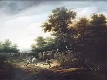 Landscape with scene of an armed holdup