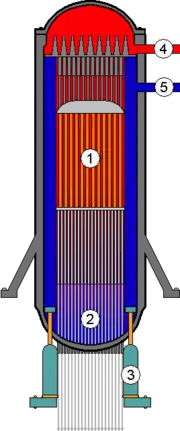 Boiling water reactors (BWRs) are the second most common[1] form of light water reactor with a direct cycle design that uses fewer large steam supply components than the pressurized water reactor (PWR), which employs an indirect cycle. The ABWR is the present state of the art in boiling water reactors, and is the first Generation III reactor design to be fully built, with several reactors complete and operating. The first reactors were built on time and under budget in Japan, with others under construction there and in Taiwan. ABWRs were on order in the United States, including two reactors at the South Texas Project site.[2] The projects in both Taiwan and US are reported to be over-budget.[3]