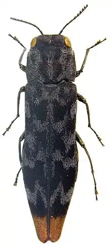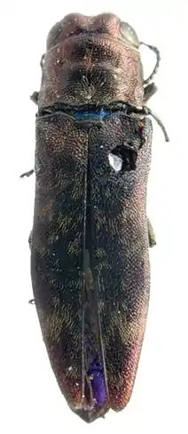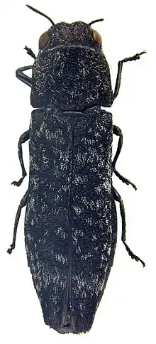 - ↑ Bellamy, C. L. "Genus Agrilus Curtis 1825". The World of Jewel Beetles (Insecta: Coleoptera: Buprestidae). The Coleopterists Society. Archived from the original on 15 February 2016. Retrieved 25 April 2018.
