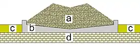 The tower is 14 metres (46 ft) high and has massive masonry walls about 3 metres (9.8 ft) thick with a number of apertures to let in air. Inside there is a massive column made of concrete. At night, the whole structure is allowed to cool, and during the day warm moist air enters the structure via the high apertures, cools, descends, and leaves the building by the lower apertures.[28] Knapen's intention was that water should condense on the cool inner column. In keeping with Chaptal's finding that the condensing surface must be rough and the surface tension must be sufficiently low that the condensed water can drip, the central column's outer surface was studded with projecting plates of slate. The slates were placed nearly vertically to encourage dripping down to a collecting basin at the bottom of the structure.[3] Unfortunately, the aerial well never achieved anything like its hoped-for performance and produced no more than a few litres of water each day.[29]