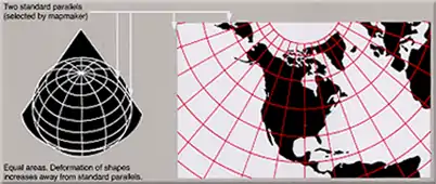 - ↑ "Directory of Map Projections". "Lambert equal-area conic".