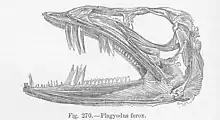 Alepisaurus ferox, the long snouted lancetfish,[2] longnose lancetfish,[2] or cannibal fish,[2] is a species of lancetfish found in the ocean depths down to 1,830 m (6,000 ft).[3] This species grows to 215 cm (85 in) in total length and a weight of 9 kg (20 lb).