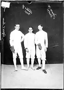 ![]() Fencers Alfred E. Sauer (left), Arthur G. Fox (middle) and James W. Knox (right). | |