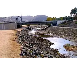 The United States Geological Survey operated a stream gage on the creek at the El Toro Road bridge in Mission Viejo from 1930 to 1980. This gage measured runoff from 7.91 square miles (20.49 km2), or 26 percent of the watershed area.[16] There was also a gauge in Laguna Beach which measured runoff from the entire watershed, but it operated only from 1982 to 1987.[17]