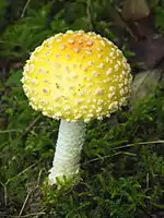 Amanita muscaria var. inzengae[41] Inzenga's fly agaric it has a pale yellow to orange-yellow cap with yellowish warts and stem which may be tan.