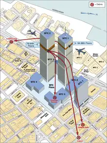 | Site | North Tower (WTC 1) of the World Trade Center, New York City, U.S. 40°42′44.5″N 74°00′46.9″W / 40.712361°N 74.013028°W |