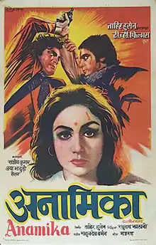 Anamika is a 1973 Indian Hindi-language romantic thriller film directed by Raghunath Jalani, and starring Sanjeev Kumar with Jaya Bhaduri. The film was remade in Telugu in 1977 as Kalpana.[1]