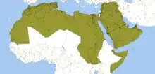 The Arab world, formally the Arab homeland,[21][22][23] also known as the Arab nation or the Arab states,[24] currently consists of the 23 Arab countries: Algeria, Bahrain, Comoros, Djibouti, Egypt, Iraq, Jordan, Kuwait, Lebanon, Libya, Mauritania, Morocco, Oman, Palestine, Israel, Qatar, Saudi Arabia, Somalia, Sudan, Syria, Tunisia, United Arab Emirates and Yemen. They occupy an area stretching from the Atlantic Ocean in the west to the Arabian Sea in the east, and from the Mediterranean Sea in the north to the Horn of Africa and the Indian Ocean in the southeast. In 2019, the combined population of the Arab world was estimated at 423 million inhabitants.[25]