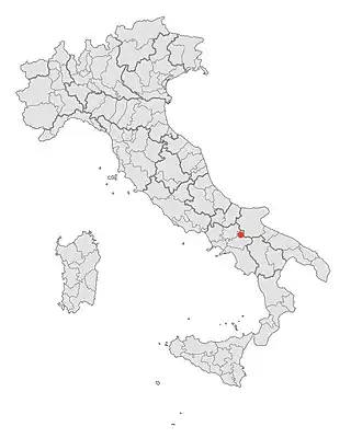 The characteristics of the Arianese dialect appear rather atypical compared to the usual Irpinia vernacular canons by virtue of the geographical position of the town, located along the northern edge of Irpinia at the height of the main pass of the Campanian Apennines (the so-called saddle of Ariano), therefore in the extreme hinterland of Campania and immediately close to the Dauno-Apulian side.[1] The Arianese dialect was able to resist relatively better the contamination of the lower Campania region in general and the Neapolitan one in particular (Naples became the capital of the Kingdom since the 13th century),[2] but it remained exposed in some measure to the Apulian (and more precisely Daunian) dialectal influences,[1] rather evident above all at a phonetic level.[3] For similar reasons, there is also a certain influence of the Irpinia dialects, and especially for the Arianese dialect, on the vernaculars spoken along the Apulian side of the Daunia mountains (the so-called Dauno-Irpinia dialects)[4] and even, albeit only superficially, on the linguistic islands present there.[5][6] It should also be noted the presence of a certain contact with the large Benevento dialect area,[7] mainly attributable to the geographical proximity as well as to the early medieval historical events.[8][9][10] Since the first half of the 19th century, however, Arianese has been considered one of the main dialects of the entire Campanian group.[11]