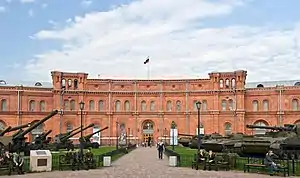 The Military Historical Museum of Artillery, Engineers and Signal Corps (Russian: Военно-исторический музей артиллерии, инженерных войск и войск связи), also known simply as the Artillery Museum, is a state-owned military museum in Saint Petersburg, Russia. Its collections – consisting of Russian military equipment, uniforms and decorations – are hosted in the Kronverk (a crownwork of the Peter and Paul Fortress) situated on the right bank of the Neva near Alexander Park. The museum is managed by the Russian Ministry of Defence.