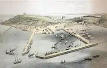 Sir Peter Killigrew (c. 1593 – 1668), younger brother, MP for Orkney, Shetland and Caithness in 1659 and for Helston in Cornwall from 1661 - July 1668,[24] known as Peter the Post from the speed and efficiency with which during the Civil War he despatched messages and other commissions entrusted to him in the cause of King Charles I".[25] He was briefly Governor of Pendennis Castle from March to September 1660.[26] He inherited Arwenack in 1633 on the death of his elder brother without children. he married Mary Lucas, daughter of Thomas Lucas, MP, of St. John's Abbey, Colchester,[19] and sister of Margaret Lucas, wife of William Cavendish, 1st Duke of Newcastle (1592–1676) and an attendant of Queen Henrietta Maria, wife of King Charles I, with whom she went into exile in France, having departed with her son prince Charles in 1644 from Pendennis Castle near Arwenack, en route for the Scilly Isles. His support for the Royalists during the Civil War caused the destruction of Arwenack House by the Parliamentarians during their 5-month siege of Pendennis Castle in 1646. It was never rebuilt again on the former grand scale. He obtained a grant to hold markets at Smithwick, next to Arwenack, which became the nucleus of the town of Falmouth, for the establishment of which new town in 1661 he received a royal charter from King Charles II, following the Restoration of the Monarchy. The document refers to Sir Peter Killigrew as "our beloved and faithful subject" and states that it is given "in consideration of the good, faithful, and acceptable services, by him the said Peter as well to Us, as to our most dear Father, the Lord Charles, late king of England (of glorious memory)"[1] He received licence to transfer of the customs house from Penryn to Falmouth and established a new parish (separate from St Budock's) for his new town served by a new church dedicated to "King Charles the Martyr", the executed Charles I, in which he was buried in 1668.[26]